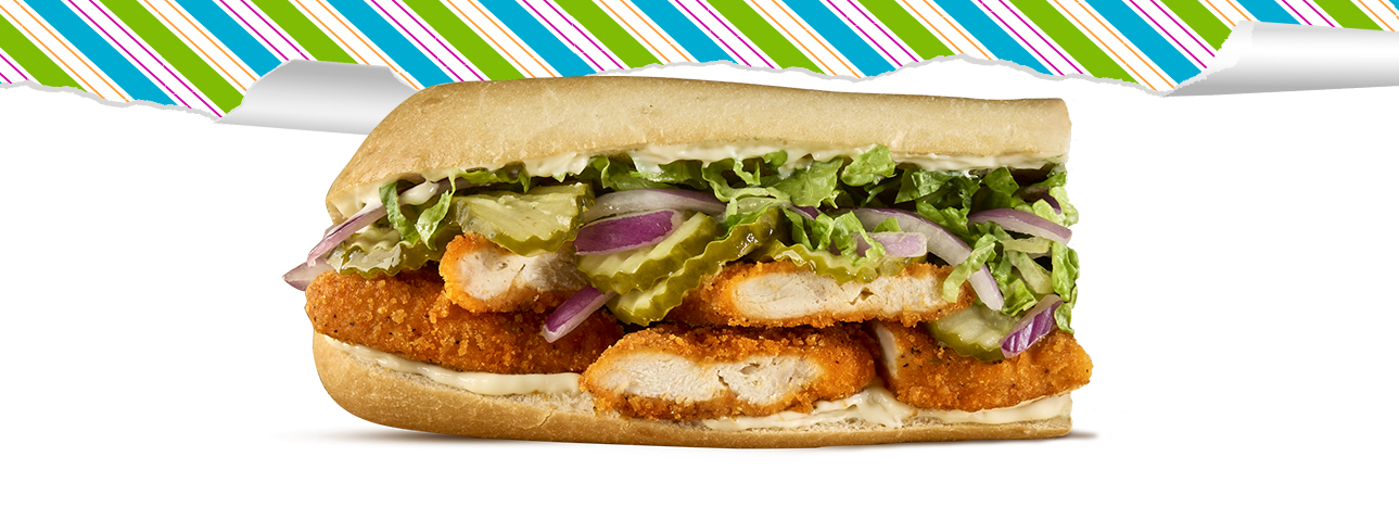Spice with Southern charm. The Spicy Southern Chicken Sub is made with spicy chicken tenders, lettuce, red onions, pickle chips and mayo on your choice of 6-inch sub roll.