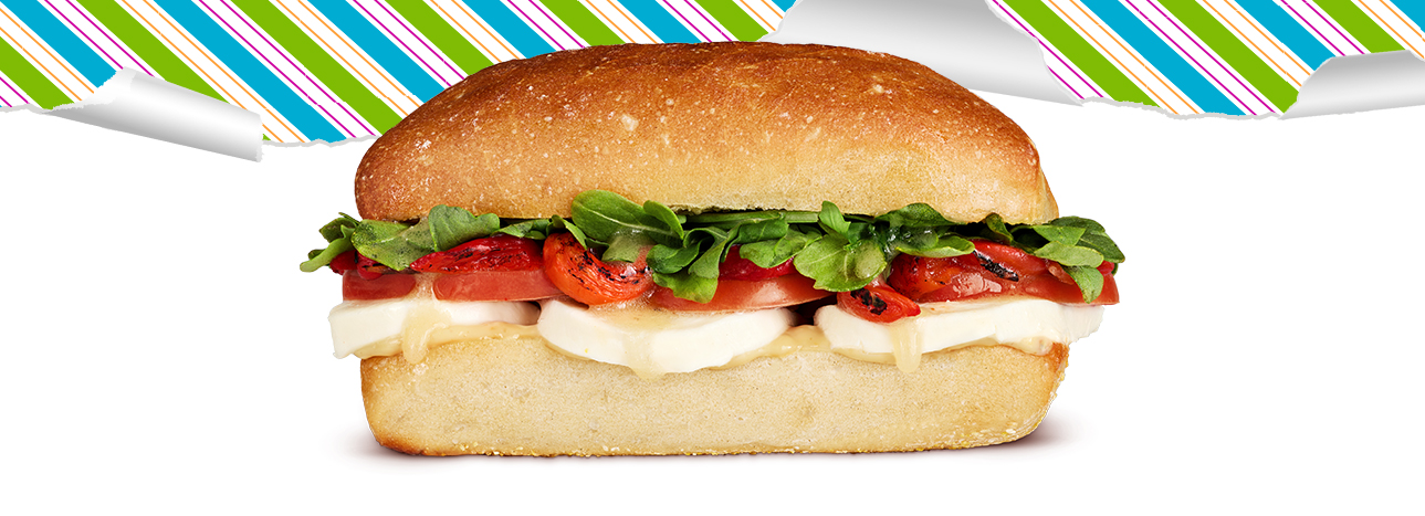 Simple, fresh and full of flavor. The Caprese Subwich is made with locally-sourced fresh mozzarella, tomato, roasted red peppers, baby arugula, garlic aioli and our signature QC vinaigrette on 5-inch fresh baked bread.