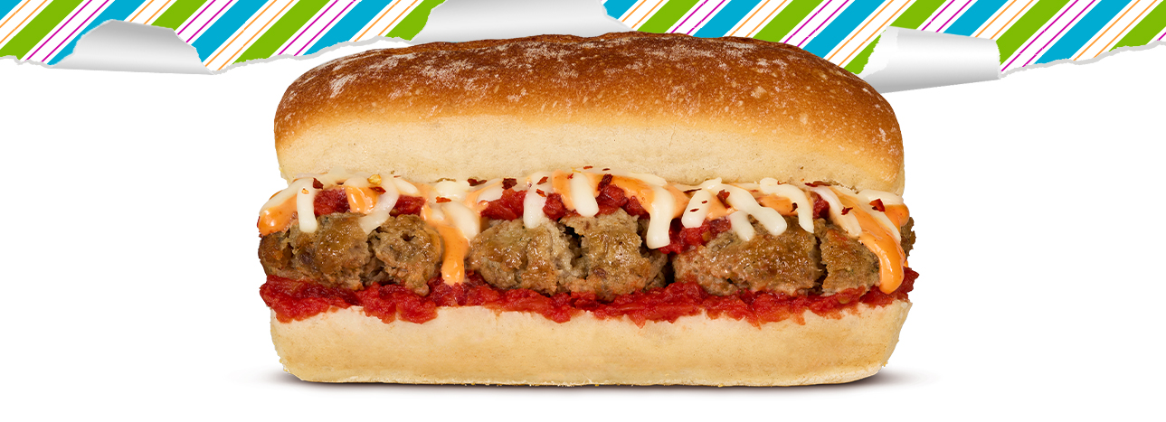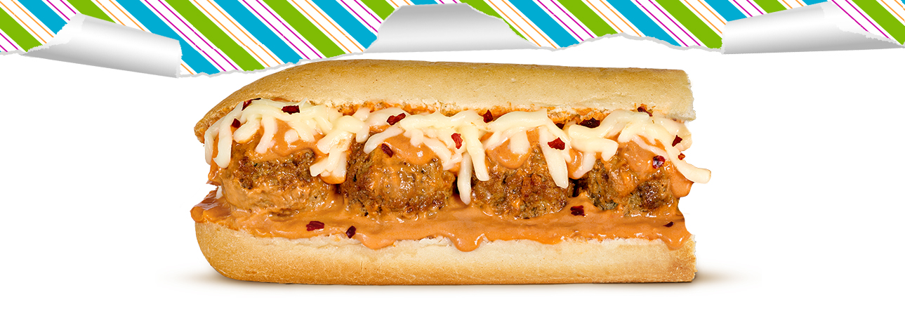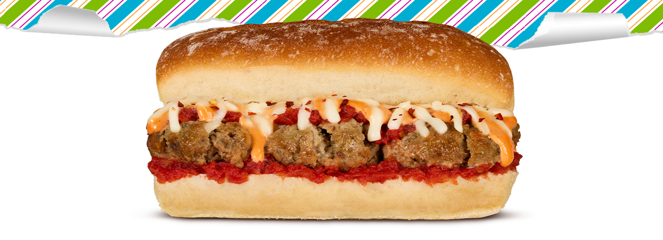 Big flavor in every bite. The Smashed Meatball with Marinara & Vodka Sauce Subwich combines smashed meatballs, marinara, and creamy vodka sauce with a kick of crushed red pepper, shredded mozzarella, and parmesan on 5-inch fresh baked bread. Try with fresh, locally-sourced mozzarella!