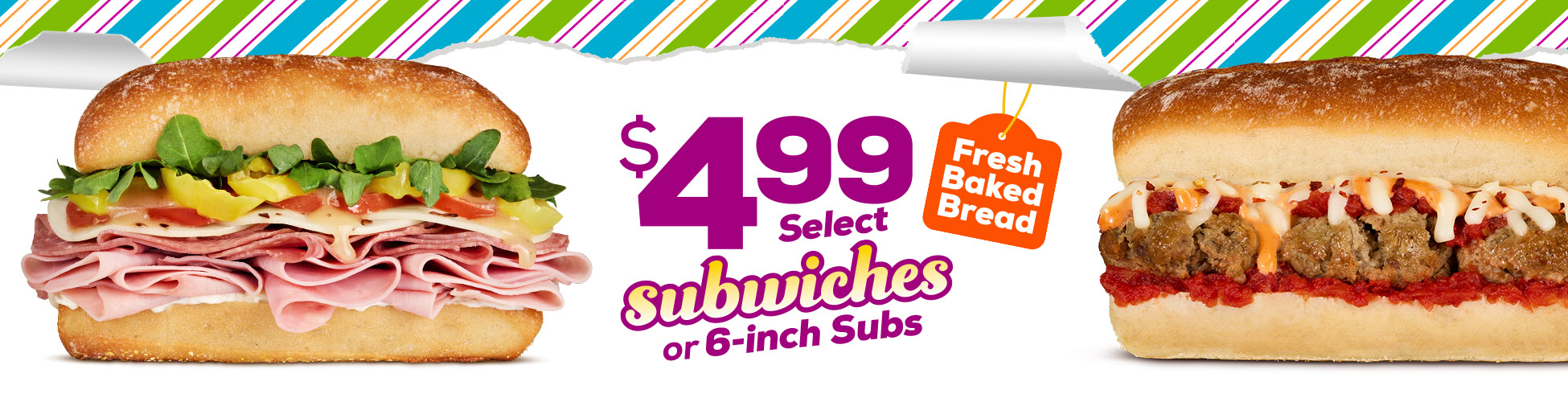 Unwrap select Subwiches made on fresh baked bread and 6-inch subs for only $4.99 this holiday season.