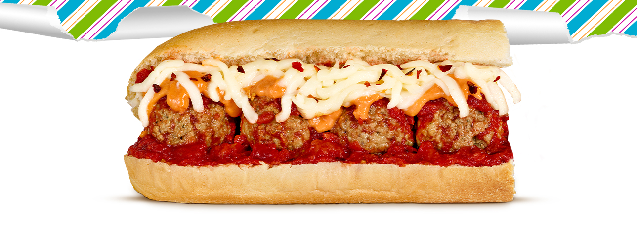 Big flavor in every bite. The Smashed Meatball with Marinara & Vodka Sauce Subwich combines smashed meatballs, marinara, and creamy vodka sauce with a kick of crushed red pepper, shredded mozzarella, and parmesan on 5-inch fresh baked bread. Try with fresh, locally-sourced mozzarella!