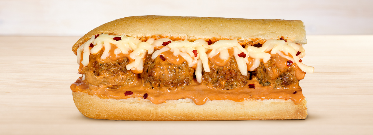Feeling saucy? The Meatball Sub with Marinara & Vodka Sauce smothers meatballs in rich marinara and creamy vodka sauce, topped with crushed red pepper and shredded mozzarella.