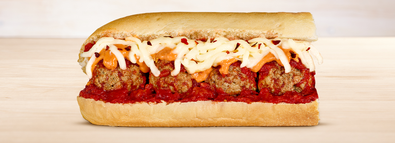 A twist on a classic. The Meatball Sub with Vodka Sauce smothers meatballs in a creamy vodka sauce topped with crushed red pepper and shredded mozzarella on your choice of 6-inch sub roll.
