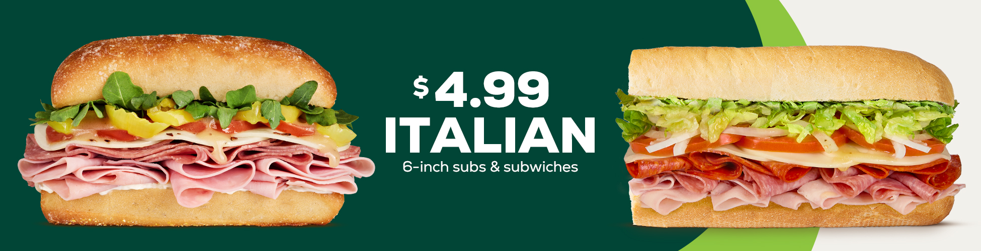 From legendary 6-inch Italian Subs to Subwiches with old school flavors and fresh baked bread, select Subwiches and 6-inch Subs are only $4.99 for a limited time.