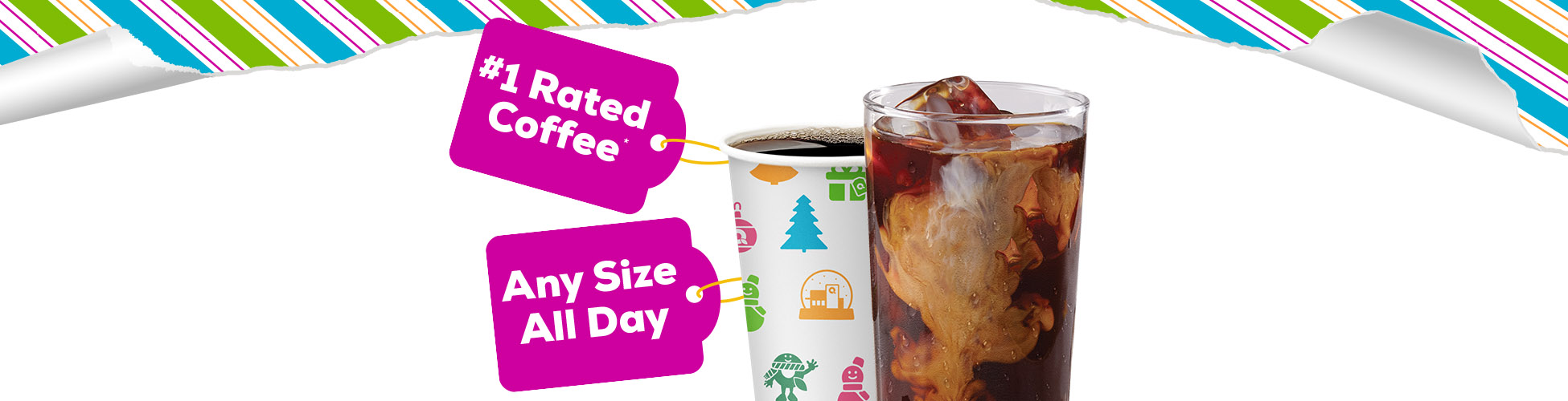Pour yourself a cup of fresh-brewed hot or iced coffee in any size and customize it with creamers, sweeteners and more.